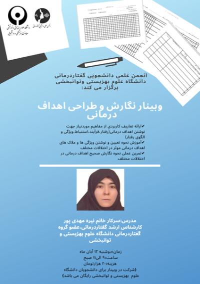 اخبار > وبینار « نگارش و طراحی اهداف درمانی »، روز دوشنبه برگزار می شود