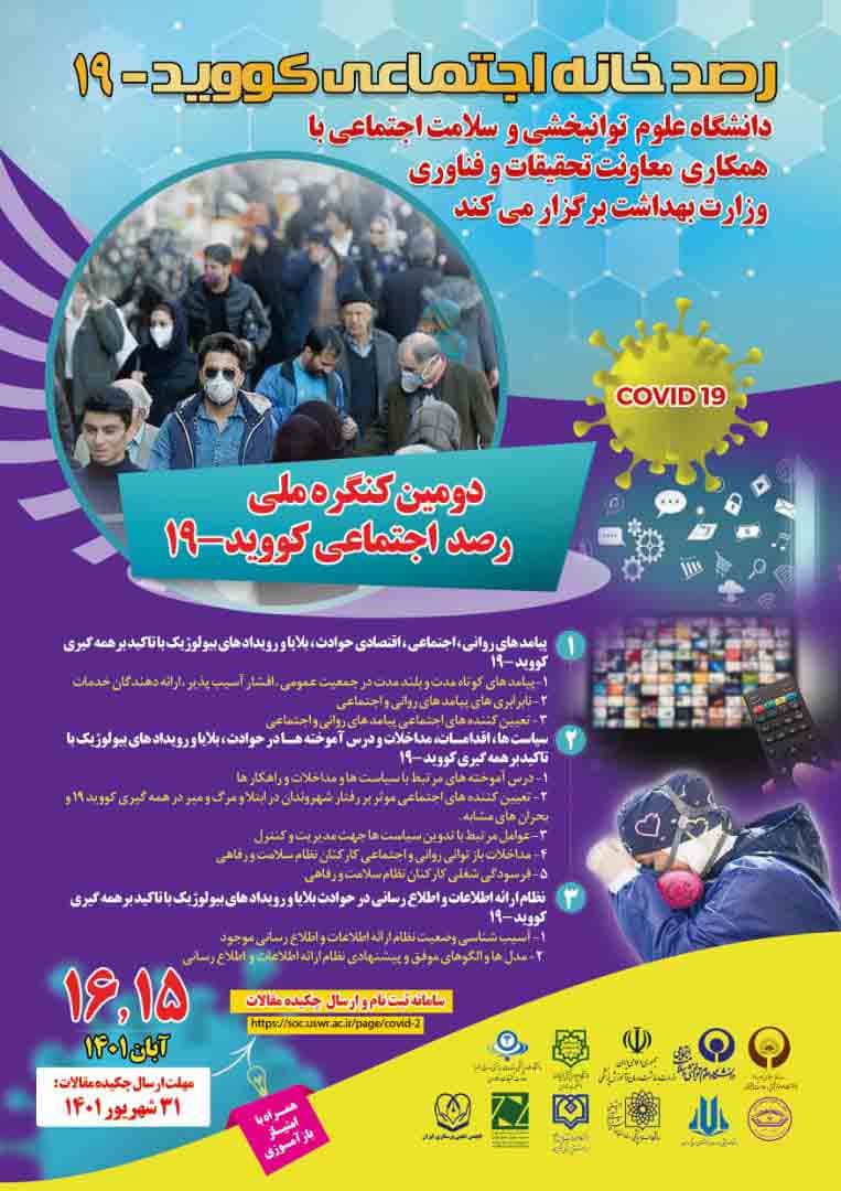 اخبار > دومین کنگره ملی رصد اجتماعی کووید 19، طی روزهای 15 و 16 آبان ماه امسال برگزار می شود