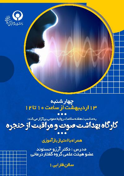 اخبار > کارگاه آموزشی "بهداشت صوت و مراقبت از حنجره "، فردا (چهارشنبه، ۱۳ اردیبهشت ماه) برگزار می شود