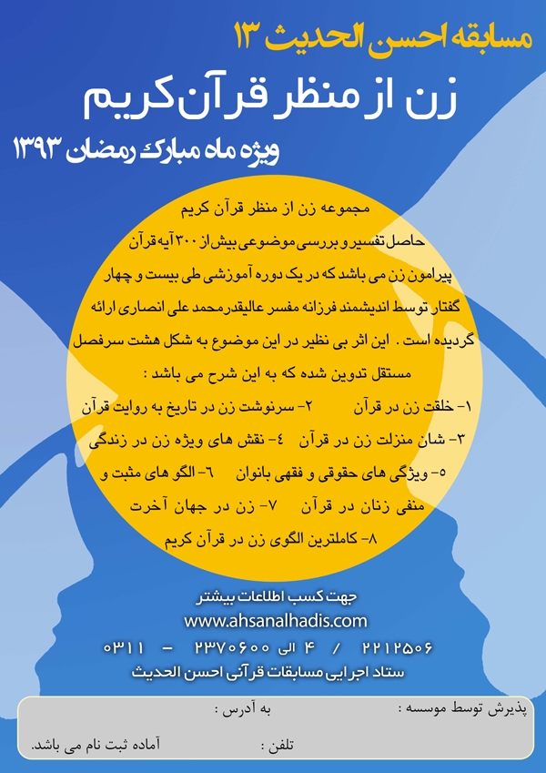 مسابقه احسن الاحدیث 13/ زن از منظر قرآن کریم/ ویژه ماه مبارک رمضان 1393