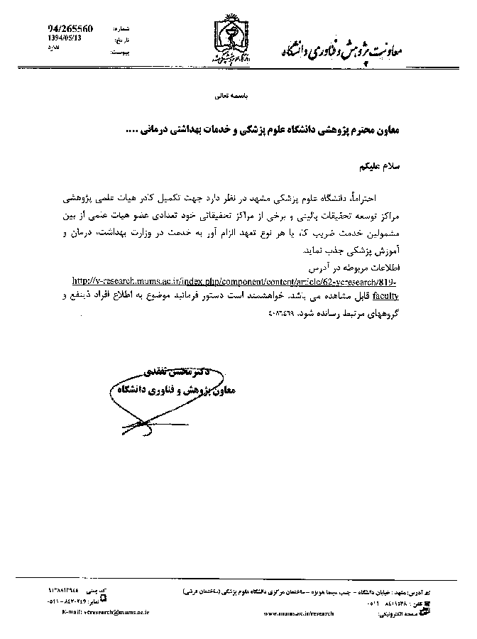 اخبار > معاونت پژوهش و فناوری دانشگاه علوم پزشکی مشهد اعلام کرد: جذب عضو هیات علمی از بین مشمولین خدمت ضریب کا