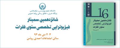اخبار > شانزدهمین سمینار فیزیوتراپی تخصصی ستون فقرات 3-2 دی ماه 94 برگزار می شود