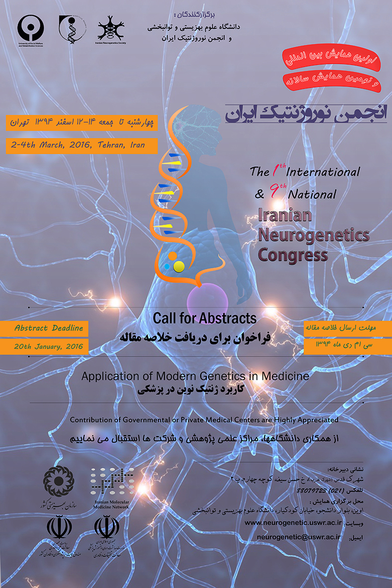 به گزارش پایگاه خبری ـ اطلاع رسانی روابط عمومی:اولین همایش بین المللی و نهمین همایش سالانه نوروژنتیک ایران
