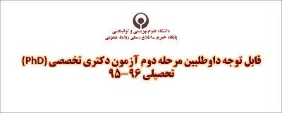 اخبار > قابل توجه داوطلبین مرحله دوم آزمون دکتری تخصصی (PhD) تحصیلی 96-95